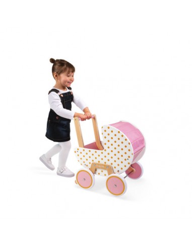 Les poupons seront confortablement installés dans ce magnifique landau aux tons roses et dorés pailletés de la collection Candy Chic ! Comme un véritable landau, ce jouet d'imitation en bois accompagnera votre enfant à partir de 18 mois dans ses premières balades avec ses bébés chéris. Il pourra imiter papa, maman ou sa nounou lors des sorties en plein air.
