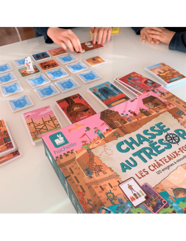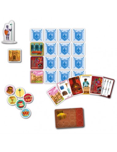 Avec 120 énigmes à résoudre pour en savoir plus sur la vie au Moyen-Age, ce jeu coopératif vous permettra de jouer tous ensemble avec un but commun, arriver tous ensemble à gagner 5 trésors ! Ce jeu se compose de 120 cartes avec encre magique (pour faire apparaître la solution en frottant avec son doigt), d'1 parcours de jeu composé de 19 cases, d'1 carte trésor, de 20 jetons de trésors ou d'objets à jeter et d'1 pion chevalier. Règles du jeu uniquement en français. De 1 à 6 joueurs. A partir de 6 ans. Durée moyenne d'une partie : 30 minutes.