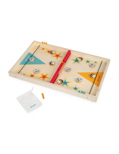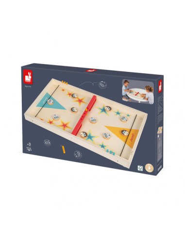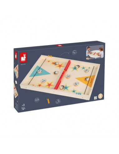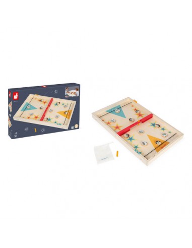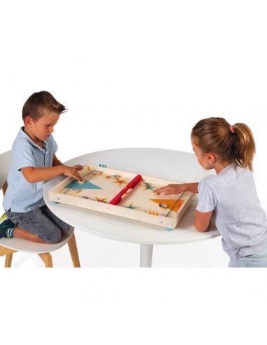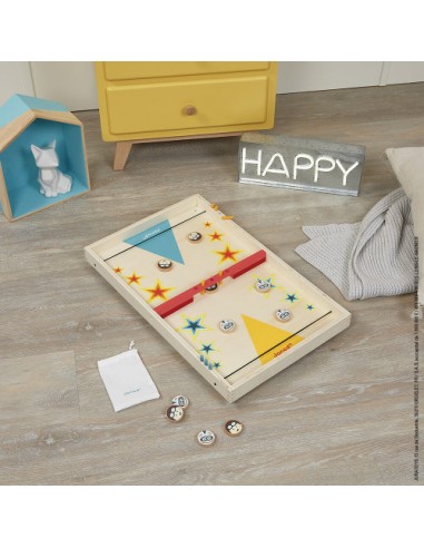 Connaissez-vous le principe du jeu de palets ? Ce jeu pour deux joueurs est un jeu d'adresse et de concentration plein de suspense ! Le principe : grâce à un lanceur, il faut être le premier à faire passer tous ses pions dans le camp adverse en visant le mieux possible !