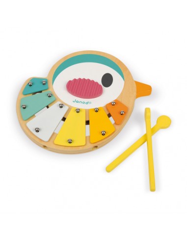 Dès 1 an, bébé va pouvoir découvrir les sons et la musique avec ce joli xylophone en bois. En forme d'oiseau et avec des touches de couleurs très douces, ce jouet d'éveil permettra à votre enfant de produire ses premiers sons et exercer son oreille.