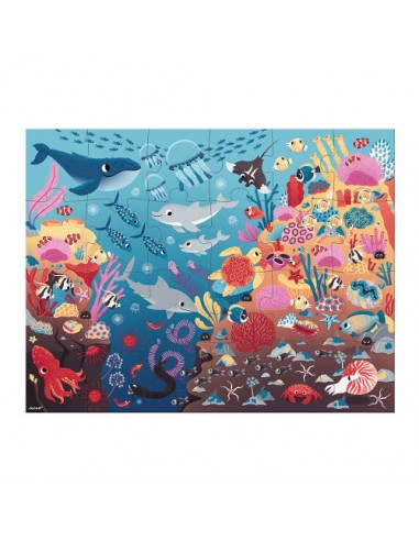 Voici un puzzle d'un genre nouveau qui va impressionner les enfants ! Pourquoi ? Parce qu'il est magique ! Ce puzzle de 24 pièces permettra aux enfants à partir de 3 ans de partir à la découverte des fonds marins grâce à une lampe spéciale qui révèlera plein de détails cachés ! Prêt pour explorer les profondeurs ? Alors, on commence par reconstituer ce puzzle aux couleurs douces puis on allume la petite lampe magique fournie pour espionner pieuvres, anémones et méduses dans leur vie nocturne ! De nouveaux éléments apparaissent dans des tons bleus et jaunes !