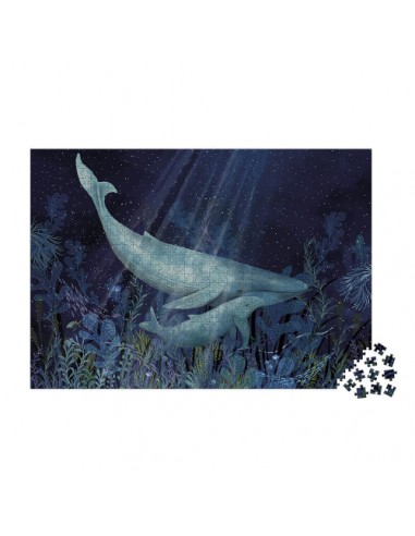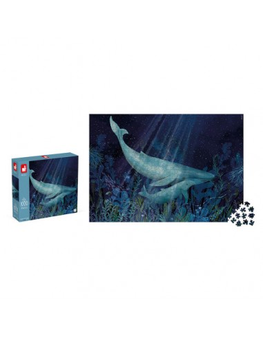 Plongeons au plus profond des océans avec ce magnifique puzzle en carton de 1000 pièces ! Que la vie est paisible sous les mers … vous voulez vous aussi goûter à la sérénité des fonds marins ? Prenez place dans votre fauteuil le plus confortable et trouvez calme et volupté au côté de cette maman baleine et de son petit, bercés par les courants frais, caressés par les algues dansantes et éclairés par un léger rayon de lumière …