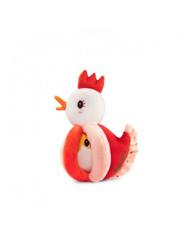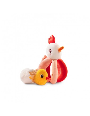 Un hochet original, que les petites mains saisissent facilement. Paulette la poule cache un petit poussin qui vient de sortir de sa coquille.