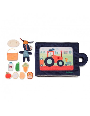Au fil des pages, il récolte les fruits et légumes, il trait les vaches, il va chercher les œufs dans le poulailler, il tond le mouton et il part ensuite au marché pour vendre ses produits. Un peu d'aide serait la bienvenue pour Ignace. Dans ce livre en tissu surprenant, votre petit bout pourra se transformer en apprenti-fermier et participer lui-même aux activités. Il apprendra une multitude de choses à propos de la vie à la ferme.