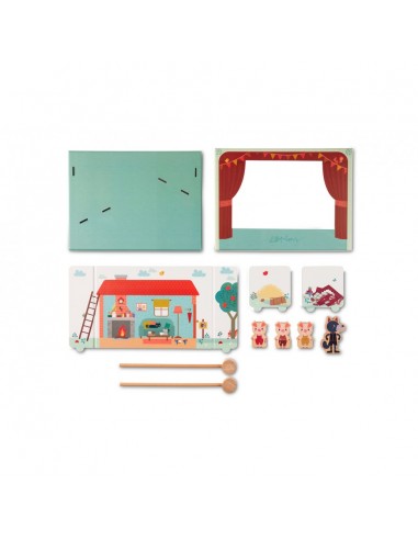 Une maison de paille, une autre de bois et la dernière en briques, laquelle de ces maisons construites par les trois petits cochons résistera face aux soufflements du loup ? Vos enfants vont pouvoir réinventer ce conte à l’infini grâce à la magie de ce théâtre qui mettra en scène et en mouvement les personnages de ce conte de Perrault. Ce théâtre magnétique sur le thème des trois petits cochons vous permettra ainsi qu’à vos enfants une fois munis de deux baguettes aimantées en bois de déplacer les personnages du célèbre conte comme s’ils se produisaient sur une scène de théâtre.
