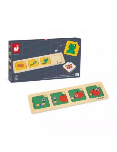 Comment une graine se transforme-t-elle en fleur ? Comment se forme le papillon ? Le support en bois est très malin ! Des points de couleurs permettent de vérifier le bon emplacement de la carte et l'enfant est donc capable de s'amuser en toute autonomie. Dans le cadre d'un atelier en duo, vous pourrez accompagner votre enfant dans son apprentissage en le laissant placer les cartes sur le support, puis vous expliquer le déroulement de la scène. Une notice explicative vous permettra d'utiliser au mieux ce jeu destiné aux enfants petite, moyenne et grande section de maternelle. Ce jeu fait partie de la gamme pédagogique Janod, développée en collaboration avec une professeure des écoles afin de coller au mieux aux apprentissages et aux programmes de chaque niveau. Il est fabriqué en bois et carton FSC®.