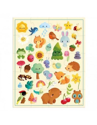 Quoi de plus malin que d'apprendre le nom des animaux et d'éléments de la nature grâce à un puzzle adapté aux enfants dès 2 ans ? Simplicité et délicatesse caractérisent ce beau puzzle en carton que les enfants vont adorer faire et refaire. On commence par un peu de concentration en reconstituant ce puzzle de 20 grosses pièces avec un peu d'aide au début, puis en toute autonomie. On peut ensuite prendre le temps de contempler puis de nommer la salamandre, l'hirondelle ou le pic-vert tellement mignons de ce jeux d'éveil sur le thème de la nature.
