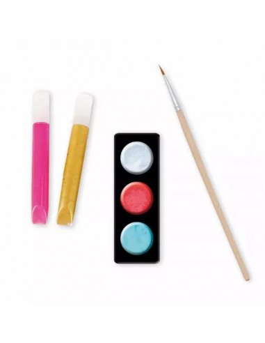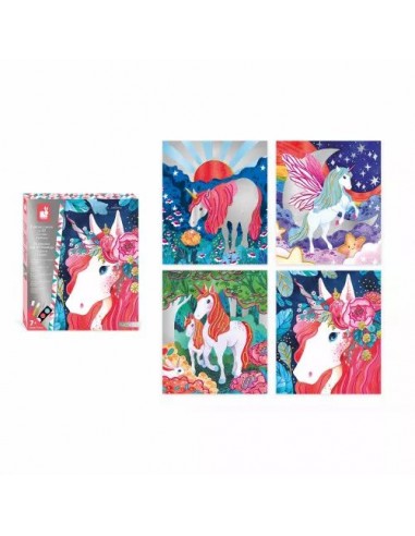 Les licornes ne demandent qu'à briller ! Ce kit créatif permet aux enfants dès 7 ans de décorer 4 tableaux à l'aide de peintures nacrées et 3D, une activité manuelle idéale pour stimuler créativité et motricité. Les licornes sont synonymes de brillance, de rêve et de mystère : elles ont besoin des enfants pour retrouver tout leur éclat ! Ce coffret contient tout le nécessaire pour exprimer sa créativité : 4 tableaux à peindre, 2 tubes de peinture 3D (couleur rose et doré), 1 palette de peinture nacrée (3 couleurs) et 1 pinceau fin.