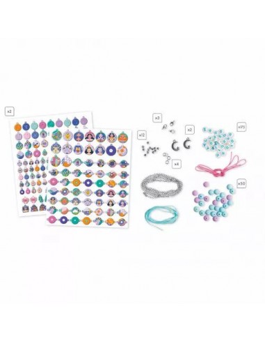Des bijoux qui ont de la personnalité ! Ce kit créatif permet de réaliser 14 bijoux sur le thème des signes astrologiques, à garder pour soi ou à offrir à ses amis, dès 7 ans. Chaque signe du zodiaque est représenté. Le coffret contient : 12 perles argentées en plastique, 175 perles "lettre" bleues aléatoires, 50 perles rondes mates, 1 cordon élastique rose, 1 chaine en argent, 4 fermoirs argent, 2 pompons, 2 breloques étoiles argent, 1 fil de jade vert, 2 planches de stickers "puffy". Un livret d'instructions et de modèles est aussi inclus : même un petit bélier appréciera l'activité ! Cet atelier bijoux permet ainsi de créer 3 bracelets en perles "lettre" et mat, 3 bracelets en chaine intercalaire, 6 bracelets fils et 2 colliers pendentifs.