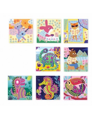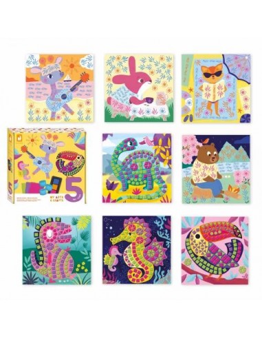 Toutes ces techniques sont parfaites pour développer la motricité fine des plus petits et leur apprendre à aimer créer ! Les enfants vont adorer mettre en valeur ces animaux rigolos. Il faut environ 1h30 pour compléter les tableaux mosaïques et 1h30 pour les tableaux encrier. Ce coffret créatif fait partie de la gamme My Arts & Crafts qui présente des animaux tout mignons aux couleurs pastel et qui propose aux plus petits leurs premières activités de création.