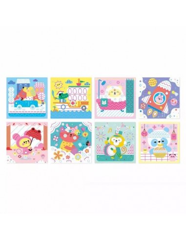 Comment aider les enfants à développer leur motricité fine ? Le loisir créatif est un bon moyen de travailler le graphisme sans s'en apercevoir ! Et quand il est décoratif, c'est encore mieux ! Ce coffret pour les enfants dès 5 ans est composé de 4 tableaux effaçables recto-verso qui mettent en scène des animaux mignons et rigolos.