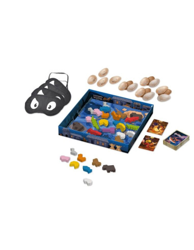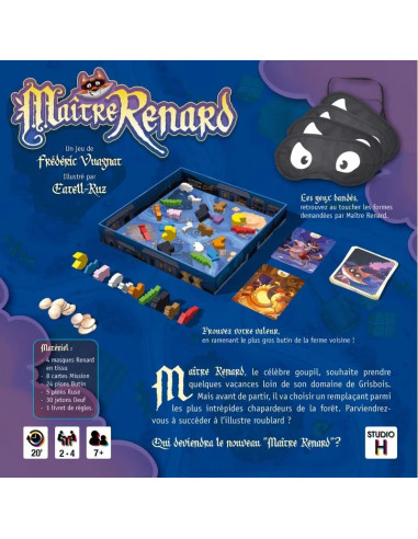 Avec les yeux bandés, reconnaissez des formes par le toucher et complétez les missions demandées ! Chaque tour, trois cartes sont révélés indiquant les animaux recherchés à récupérer dans la boîte le plus vite possible. La dernière manche ajouter quelques subtilités: les bébés renards rapportent des points supplémentaires, les serpents permettent de voler le butin des autres et le marteau vous permettra de vous défendre ! Et attention à ne pas vous tromper de forme...