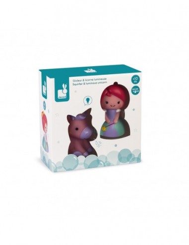 Votre enfant inventera de merveilleuses histoires avec cette princesse et sa licorne lumineuse. La licorne s’illumine lorsqu’elle touche l’eau, ou par contact des doigts et s’éteint automatiquement au bout de 20 secondes.