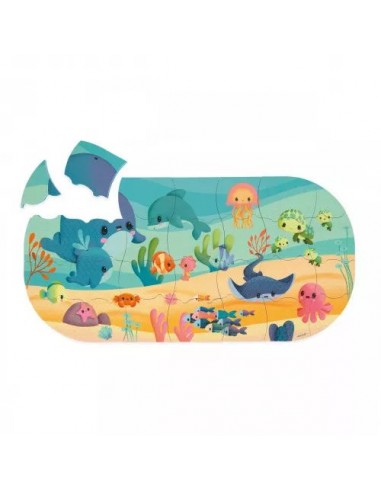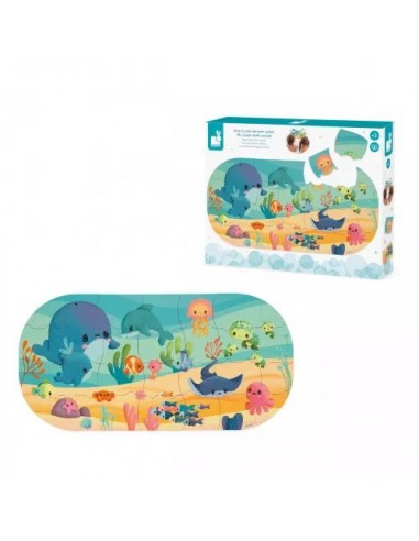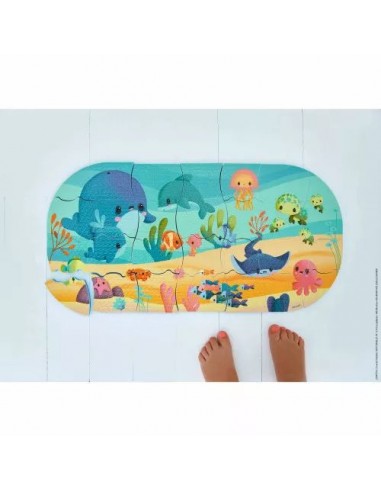 Avis aux passionnés de puzzles, profitez maintenant de votre activité préférée dans le bain ! C'est possible grâce à ce puzzle en EVA de 28 pièces qui vous fera plonger 20 000 lieues sous les mers ! Raies, baleines et autres dauphins vivent paisiblement au fond l'eau, la scène est pleine de couleurs et d'animaux marins très mignons.
