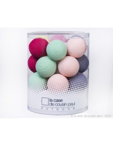Guirlande de 24 boules en fil de polyester , équipées d'un clip exclusif et breveté, et traitées pour un usage à l'extérieur. Les boules sont imperméabilisées .Câble noir de 24 LED : longueur 5 m de la première à la dernière LED plus 4 m du transformateur à la première LED, et 40 cm de fil après la dernière LED, 22 cm entre chaque LED, 3 crochets pour suspendre la guirlande.