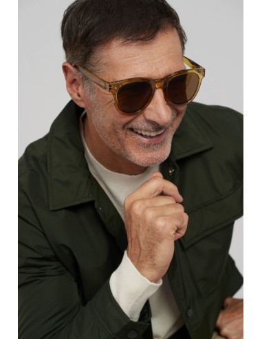 Lunettes de soleil - Forme #N : trapèze, oversize - Monture crystal, shiny et biosourcée - Protection 100% UV Catégorie 3 - Modèle mixte et universel - Pochette de rangement incluse dans la boîte.