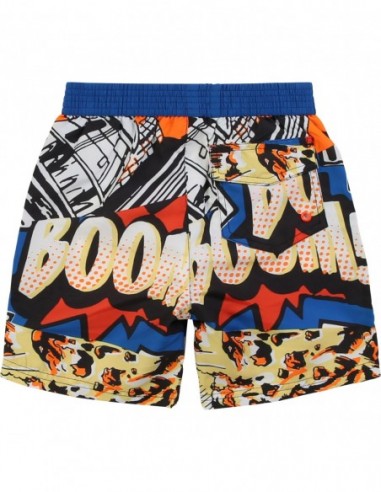 Ce maillot de bain pour garçon Billybandit a un charme fou grâce à son imprimé original qui rappelle les comics américains. Pratique, il dispose d'une taille élastiquée avec des liens de serrage, de deux poches sur les côtés et d'une poche à rabat à l'arrière.