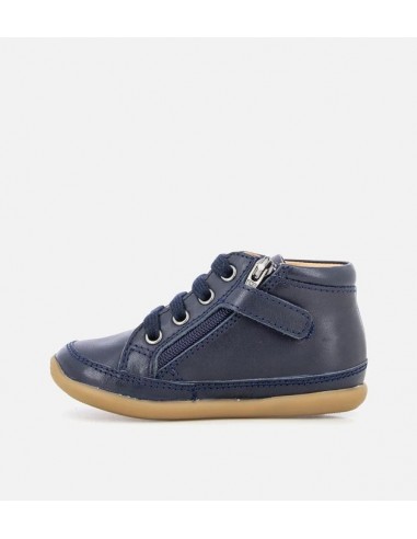 Cupy Zip Lace est une chaussure premiers-pas mi montante, présentée ici dans une version en cuir lisse bleu marine. Légère et doté d’une semelle souple pour le bon déroulement du pied, elle a une tige haute pour un bon maintien de la cheville. Elle se chausse et se déchausse facilement grâce à son zip intérieur. La semelle extérieure est en caoutchouc naturel.