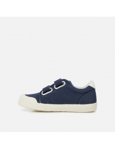 Ten V2 W est une sneaker pour enfant, présentée ici dans une version en toile bleu marine et blanc. Cette chaussure est conçue à partir de matériaux de qualité : légère et souple pour le déroulement du pied. La doublure est en coton biologique, et la semelle en microfibre hypoallergénique et antimicrobienne, à base de maïs. Elle se chausse et se déchausse facilement grâce à ses bandes auto-agrippantes.