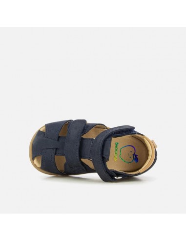 Pika Scratch est une sandale premiers-pas, présentée ici dans une version en cuir nubuck bleu marine. Cette chaussure est conçue à partir de matériaux de qualité : légère et souple pour le déroulement du pied. Elle a une tige haute pour un bon maintien de la cheville et du cou-de-pied, et un bout fermé pour protéger les orteils. Elle se chausse et se déchausse facilement grâce à ses bandes auto-agrippantes.