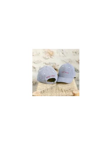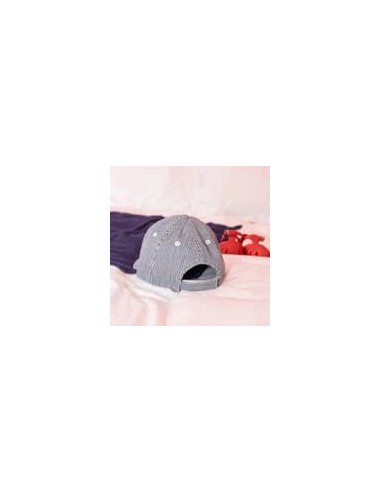 Couleurs : rayures bleu marine, broderie et dessous de la visière rouges