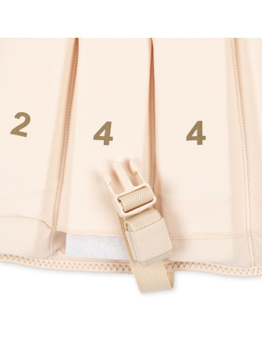 Doté d’une fermeture éclair et d’une fermeture à scratch. Dispose d’une sangle de sécurité à l’entrejambe afin d’empêcher votre enfant de glisser hors du gilet.