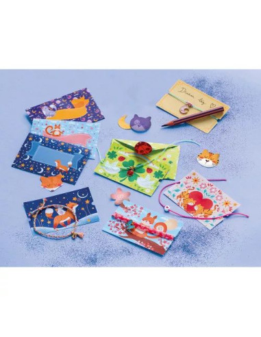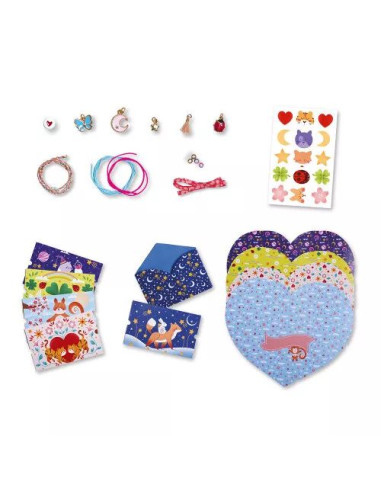 Présentés sur leur carte assortie et dans une belle enveloppe, les bracelets à vœux sont de sympathiques petits cadeaux. Grâce à cette activité créative, les enfants développent leur dextérité et leur minutie ! Le coffret créatif contient : 5 cartes, 5 enveloppes, 1 planche de stickers assortis à chaque bracelet, 5 perles, 5 breloques, 4 fils et rubans. La réalisation des bracelets est très simple et fera la joie des fans de bijoux, même des plus impatients ! Ce sont des porte-bonheurs que l’on garde précieusement près de soi pour gagner en confiance et se rappeler que la magie est partout. Alors, partagez la chance autour de vous !