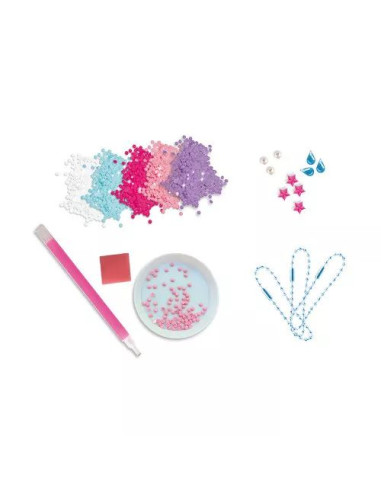 Pour cela, le coffret créatif contient : 3 porte-clés autocollants, 3 chaînes, 10 strass, 700 mini-strass, 1 stylet, 1 carré de cire et 1 coupelle. Des instructions et des modèles sont fournis pour que les enfants expriment leur créativité et suivent les étapes pas à pas, ils sont imprimés à l'intérieur de la boîte. Cet atelier créatif est une chouette idée de cadeau pour un anniversaire. Plongez dans l'univers de la collection "Magic Ocean", des kits de loisirs créatifs pour enfant sur le thème des profondeurs marines, pour des après-midis créatifs bercés par le son des vagues !