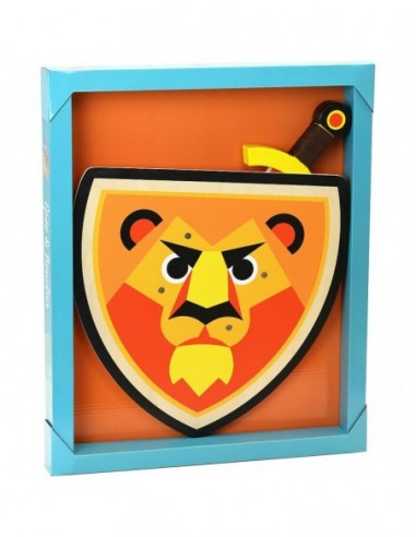 Un bouclier et une épée en bois pour les apprentis chevaliers. Je suis le Roi des animaux !