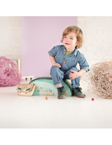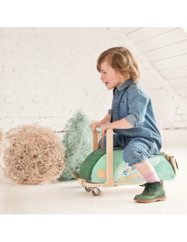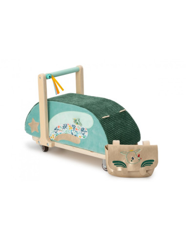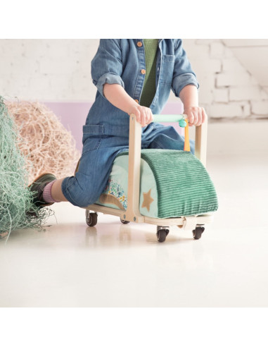 Installé confortablement sur ce porteur tout doux, les petits pourront faire la course dans la pièce en toute sécurité. Le petit sac est amovible. Quand l'enfant devient trop grand pour le porteur, le siège est détachable et peut être utilisé comme pouf.