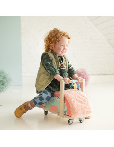 Installé confortablement sur ce porteur tout doux, les petits pourront faire la course dans la pièce en toute sécurité. Le petit sac est amovible. Quand l'enfant devient trop grand pour le porteur, le siège est détachable et peut être utilisé comme pouf.