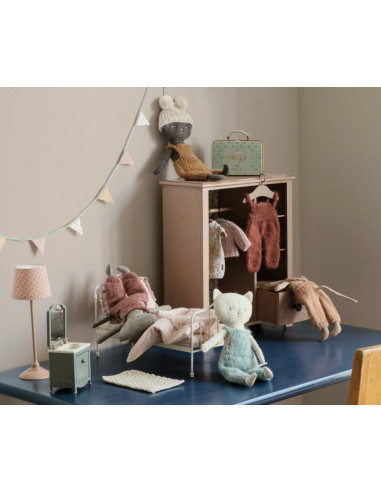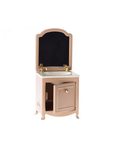 Un joli article pour la salle de bain royale dans le château de souris Maileg. Il contient un petit rangement en-dessous de l'évier ainsi qu'un miroir.