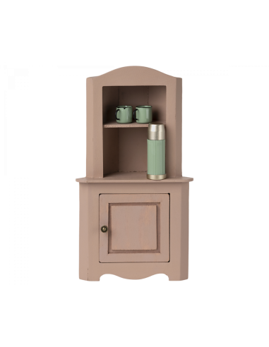 Cette armoire d'angle ajouera quelque chose de nouveau à votre pièce à vivre dans la Maison de Miniature Maileg. Elle est peinte de façon à lui donner une originale allure vintage.