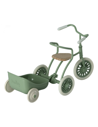 On adore le tricycle Maileg qui sera parfait pour la sortie d'école ou en balade. Les souris grand frère/sœur s'adapteront parfaitement à lui et celles avec les pattes aimantées peuvent facilement tenir les poignées. Ce beau vélo est livré dans une boîte de garage et un panier ainsi qu'un chaiot peuvent être acheté séparément.