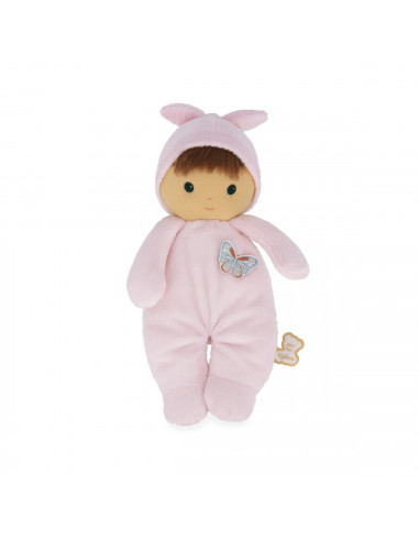 Le torse de cette petite poupée rose est orné d'un papillon délicat, qui rappelle la légèreté et la grâce des fleurs : un détail pensé pour une touche de poésie supplémentaire. L'étiquette en forme de papillon est une invitation à développer la dextérité et la curiosité sensorielle de bébé. Chaque étreinte avec Bébé Camélia stimule les sens en douceur et encourage le développement tactile des jeunes enfants. Son adorable bonnet noué est un élément de plus à explorer du bout des doigts. Fabriqué avec 90% de matériaux recyclés, ce premier poupon illustre notre engagement à réduire notre impact environnemental tout en assurant une qualité et une sécurité sans compromis. Lavable en machine à 30°, Bébé Camélia est conçu pour être un compagnon de tous les jours pour bébé, dès la naissance. Bébé Camélia est une petite peluche qui invite à la tendresse, elle sera le petit bébé de votre bébé. Ce poupon en tissu rose est un cadeau de naissance idéal, empreint de douceur et de souvenirs d’enfance, qui encourage l’imagination et l’affection des petits dès le plus jeune âge.