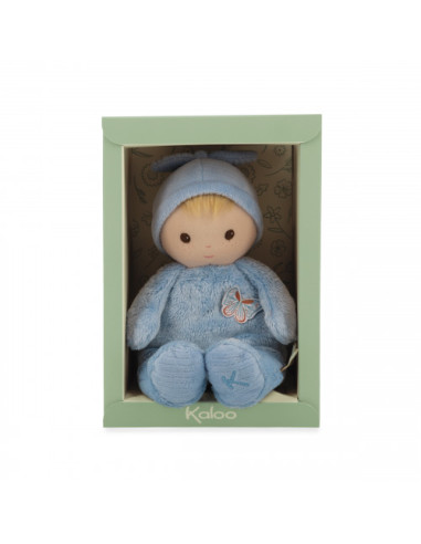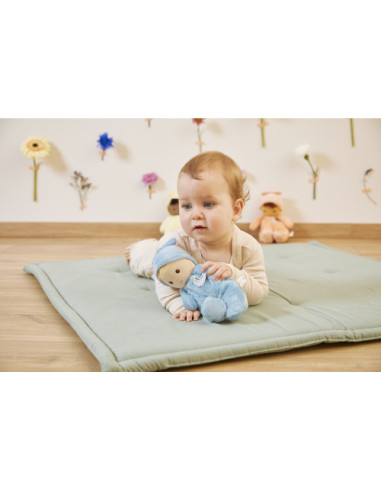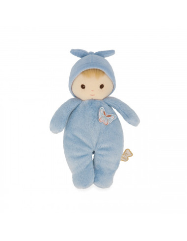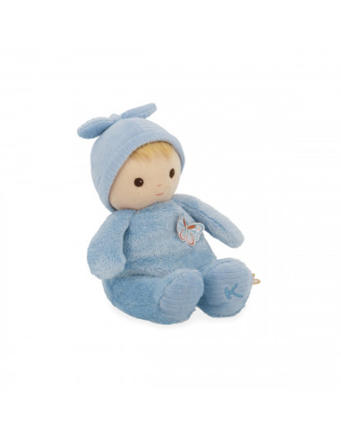 Le torse de cette petite poupée est orné d'un papillon délicat, qui rappelle la légèreté et la grâce des fleurs : un détail vraiment poétique. L'étiquette en forme de papillon est une invitation à développer la dextérité et la curiosité sensorielle de bébé. Chaque câlin avec Bébé Lin stimule les sens en douceur et encourage le développement tactile des jeunes enfants. Son adorable bonnet noué est un élément de plus à explorer. Fabriqué avec 90% de matériaux recyclés, ce premier poupon illustre notre engagement à réduire notre impact environnemental tout en assurant une qualité et une sécurité sans compromis. Lavable en machine à 30°, Bébé Lin est conçu pour être un compagnon réconfortant pour bébé, dès la naissance. Bébé Lin est une petite peluche qui invite à l’affection, elle est le symbole du lien qui se créé lors de l’arrivée de bébé. Ce poupon en tissu bleu est un cadeau de naissance empreint de douceur et de délicatesse, qui encourage l’imagination et l’affection dès le plus jeune âge.