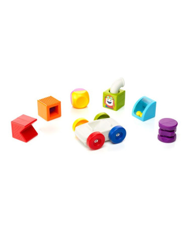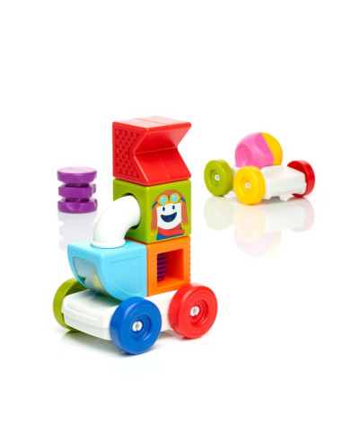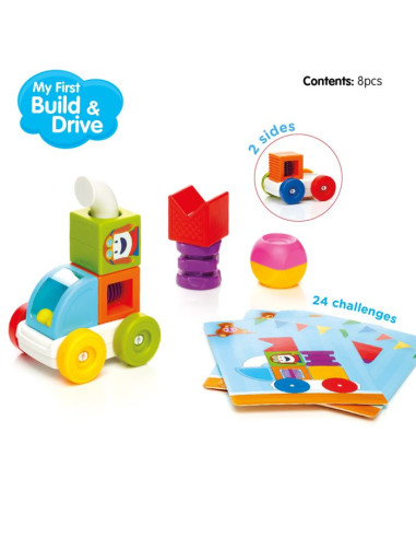 C’est l’heure de se mettre en route! « My First Build & Drive » vous emmène pour un drôle de voyage. Les petites mains pourront s’amuser à assembler les pièces dès 18 mois, puis s’appliquer à reproduire les modèles des 24 défis dès 2,5 ans. Retournez le socle du véhicule pour réaliser des défis plus difficiles. Devenez incollables sur le magnétisme, les couleurs, les formes, les angles ainsi que les concepts de dessus, dessous, gauche et droite. Combinez « My First Build & Drive » avec tous les autres SmartMax et développez votre motricité fine, équilibre et créativité. Des constructions à l’infini garanties !