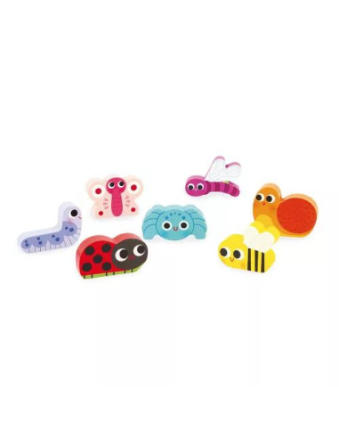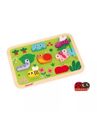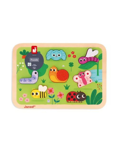 En avant les jardiniers en herbe ! Découvrez notre puzzle en bois sur le thème du jardin, conçu pour les bébés dès 18 mois. Ce jouet d'éveil se compose de 7 pièces épaisses, facilitant ainsi leur préhension par les petites mains. Chaque pièce du puzzle est soigneusement conçue pour représenter une petite bête du jardin : escargot, abeille, papillon, coccinelle, chenille, araignée et libellule. Et ce n’est pas tout ! Ces pièces peuvent également être utilisées comme figurines pour prolonger le jeu et stimuler l’imagination de votre enfant.