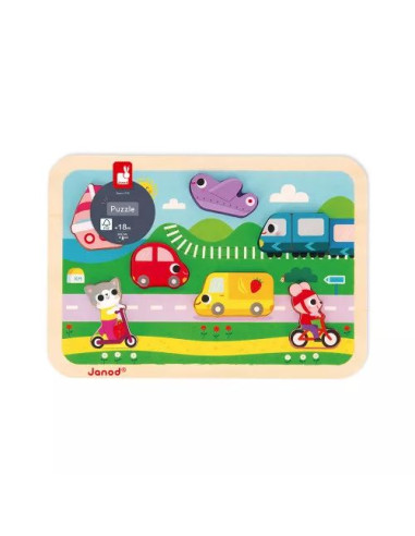Ce puzzle en bois est plus qu’un simple jeu, c’est un outil pédagogique qui aide à développer la motricité fine de bébé tout en s'amusant. En manipulant et en assemblant les pièces, votre enfant renforce sa coordination et sa capacité à se concentrer. C'est un jouet premier âge idéal comme première approche pour apprendre le nom des véhicules, que bébé sera amené à rencontrer au fil de ses explorations, et à décrire leurs actions : le bateau flotte, l'avion s'envole, le camion transporte des fruits frais ... En jouant avec les pièces et en les encastrant sur le support, votre enfant développe sa capacité de préhension. Un puzzle en bois est aussi un super moyen de stimuler l'esprit logique ! Proposez ce joli puzzle à bébé au moment des repas, pour le faire patienter, ou pour une activité calme après la sieste. Puzzle en bois FSC™ et peinture à l'eau.