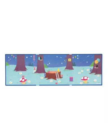Vite, approchez ! La nuit vient de tomber dans la forêt et une grande surprise se prépare. Ce jeu magnétique émerveillera vos enfants dès 3 ans. Ce décor illustré servira de support à l’imagination et la motricité fine de votre tout-petit. En effet, ce jeu magnétique se compose d’une grande planche décorée ainsi que de 30 magnets. Les aimants, une fois déposés sur le panorama festif, seront le point de départ d’une multitude d’histoires merveilleuses !
