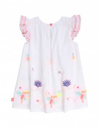 Cette ravissante robe pour fille Billieblush est confectionnée en popeline de coton, une matière raffinée à l'aspect soyeux. Fermée par une fente boutonnée au dos, elle se pare de broderies exotiques hautes en couleur. Avec ses volants aux emmanchures et ses fronces à l'encolure, elle est gage d'élégance.
