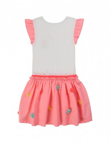 À l'instar de cette robe bimatière, la fantaisie et les couleurs font partie de l'ADN Billieblush. En jersey et popeline, cette robe midi se caractérise par des manches courtes volantées, une taille élastiquée et une jupe ample. Elle est ornée de pompons multicolores sur la jupe et d'une illustration fantaisie sur la poitrine.