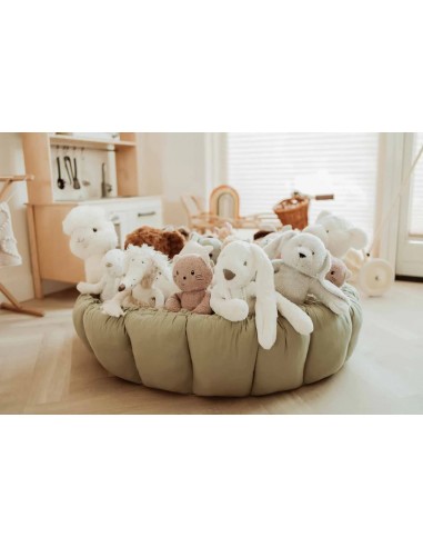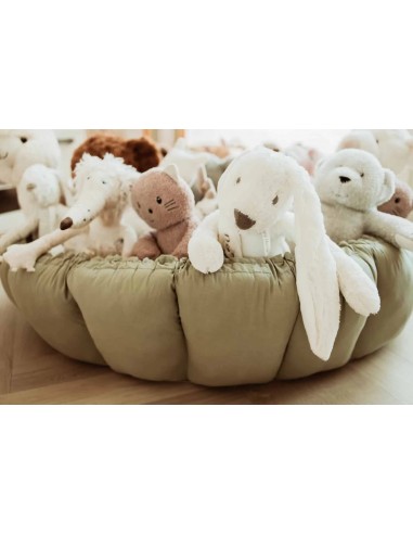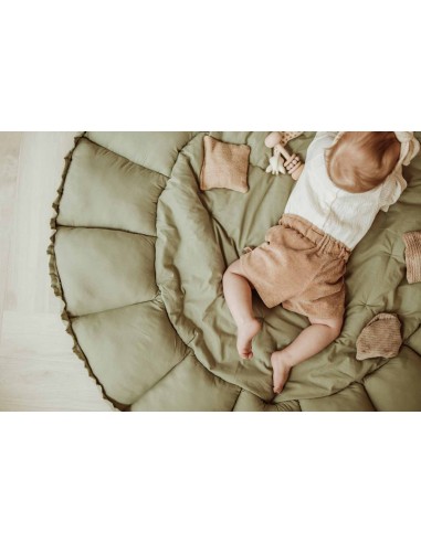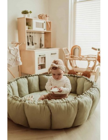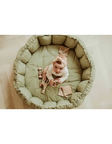 Play and Go a développé Bloom. Lorsque les pétales sont déployés il s'agit d'un tapis d'éveil et lorsque les pétales sont redressés vous pouvez l'utiliser en tant que parc d'éveil au contour sécurisant et rassurant ou encore en panier de rangement pour une chambre ou une salle de jeu. Un produit 3 en 1 qui évolue avec bébé. Les pétales se redressent grâce à un système de ficelles que l'on tire, une action simple qui se réalise en moins d'une minute pour passer du tapis au panier. Confortable et moelleux c'est un produit idéal pour les premiers mois de bébé. Son tissu en coton biologique et son rembourrage polyester recyclé apporte confort et douceur tout en respectant l'environnement.