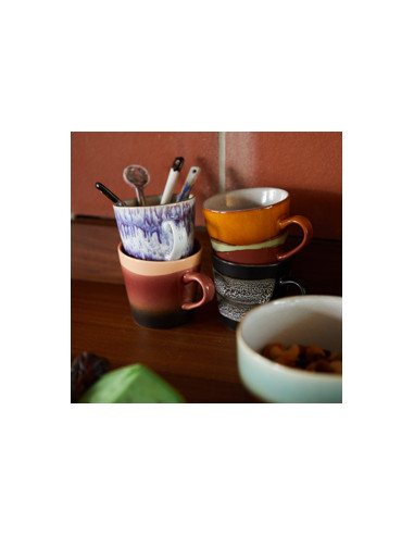 Un favori de tous les temps : le filtre à l'ancienne, l'Americano tendance ou le café lent parfait. Les tasses Americano ont une capacité de 260 ml, vous avez donc toujours raison. Grâce aux éléments terreux et aux couleurs naturelles, il s'agit de la gamme la plus décontractée de la collection en céramique rétro des années 70. Les compositions de couleurs passionnantes et les surfaces texturées et finies à la main rendent chaque pièce unique.