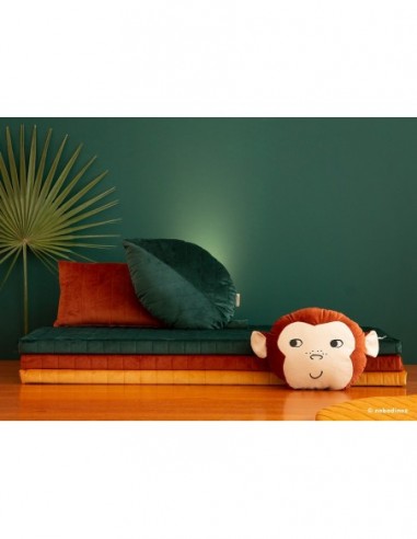 Un coussin tout doux en forme de feuille tropicale, qui vous fera voyager vers un univers de douceur. • 53 x 35 x 8 cm • velours recyclé extra-doux matelassé • coussin ludique en forme de feuille • lavable en machine