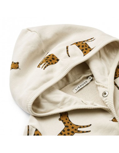Une combinaison à capuche confortable, parfaite pour tous les jours. Taillée dans un coton éponge biologique, un poids parfaitement adapté pour assurer un confort respirant avec une fermeture facile à boutons-pression recouverts de tissu mat sur le devant, un ourlet de manche élastique et des poignets côtelés.